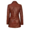 Elevate your style with the women’s Cognac Waxed Leather Overcoat. This real leather trench coat in rich brown is the perfect vintage-style outerwear for a sophisticated look. Shop this long brown genuine leather overcoat and add a timeless piece to your collection of women’s designer brown leather coats.