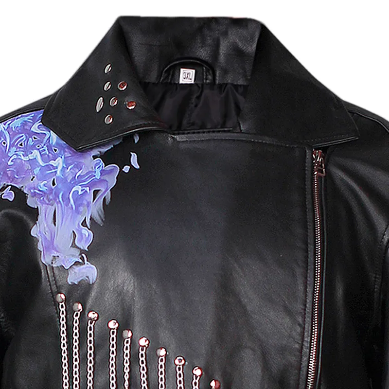 Unleash your inner villain with the Descendants 3 Hades Studded Coat. This iconic Men’s black real leather coat features a unique studded design, perfect for fans looking for an authentic Hades costume replica or a standout studded leather coat. Elevate your style with this must-have long-tail black leather coat for Hades cosplay.