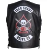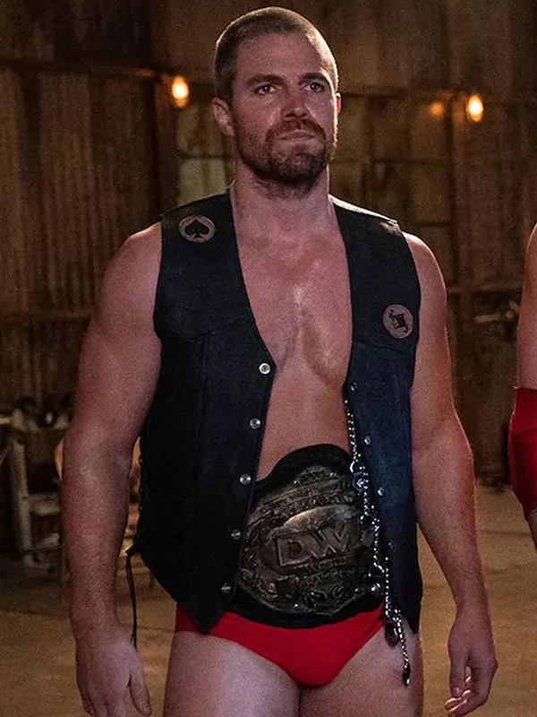 Channel Jack Spade’s rugged style with the official Heels 2021 Jack Spade Black Leather Vest. This premium Men’s black real leather vest is an essential piece of authentic Stephen Amell wrestling apparel. Perfect for fans seeking a durable and iconic black leather motorcycle vest or a genuine Jack Spade costume replica from the show.