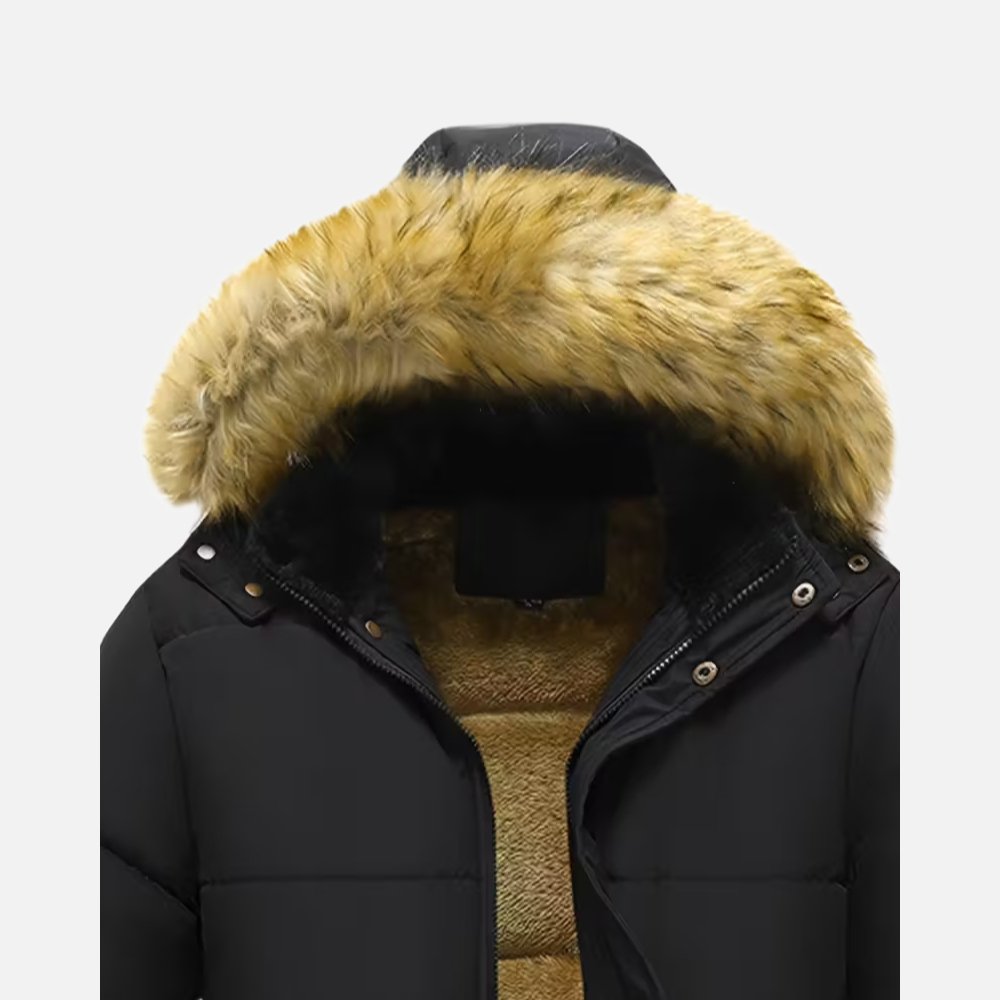 Jacket with Faux Fur Trim, Pockets & Adjustable Drawstrings – Black Polyester