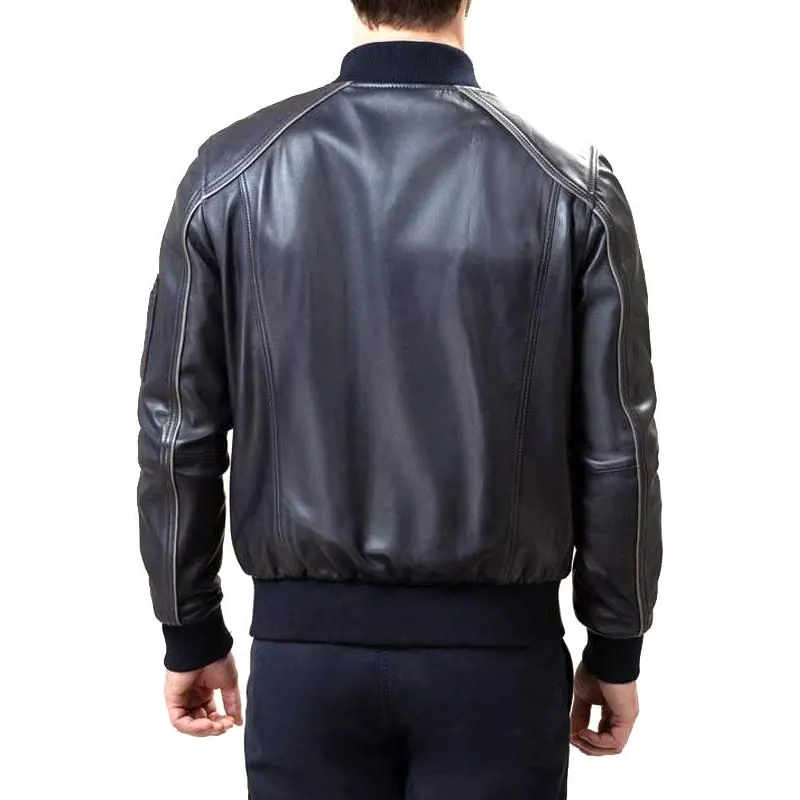 Black Men Leather Bomber Jacket