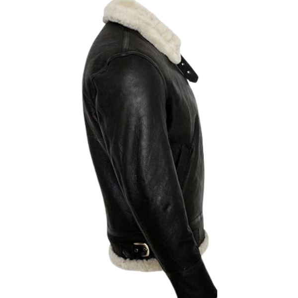 Pilot your style with the ultimate winter luxury: the Men’s Cream B3 Shearling Sheepskin Leather Flying Aviator Jacket. Crafted from premium black sheepskin leather with a cream shearling interior, this jacket offers supreme warmth and a rugged, classic flair. Perfect for a men’s black leather B3 aviator jacket look, it’s the ideal outerwear for those seeking an authentic and high-quality sheepskin leather flying jacket. Embrace timeless fashion with this essential piece of men’s shearling outerwear.