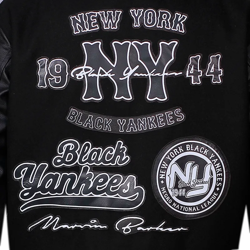 Own a piece of history with the New York Black Yankees 1944 Baseball Varsity Jacket. This authentic black leather varsity jacket offers classic style and features premium construction, perfect for baseball jacket collectors and fans of vintage 1944 baseball apparel. Get this iconic black leather varsity baseball jacket today.