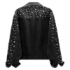 Dazzle and shine with the Pearls Cropped Rhinestones Jean Jacket. This stunning black fabric women’s jacket features sparkling rhinestones and chic pearl detailing for an effortlessly elegant look. Perfect for adding glamour to any outfit, this cropped black denim jacket with pearls and rhinestones is a must-have statement piece for stylish layering. Elevate your wardrobe with this trendy, fashion-forward women’s embellished cropped jacket.