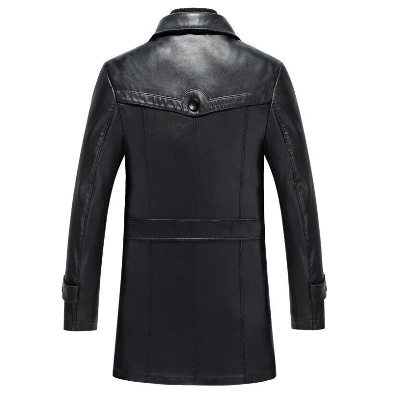 Black Stylish Motorcycle Leather Overcoat