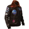 Own the skies with the iconic Men’s Tom Cruise Maverick Top Gun Dark Brown Leather Jacket. This authentic genuine leather flight bomber jacket is a must-have for fans and aviation enthusiasts. Featuring a classic design, this dark brown men’s bomber jacket offers a rugged, stylish look for everyday wear or costume use. Get your hands on this Maverick Top Gun replica leather jacket for a timeless piece of outerwear.
