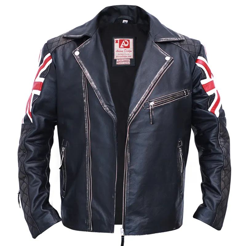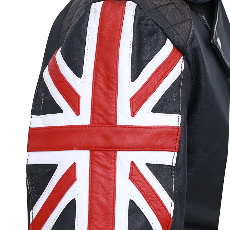 Black Union Jack Biker Vintage Leather Jacket For Mens