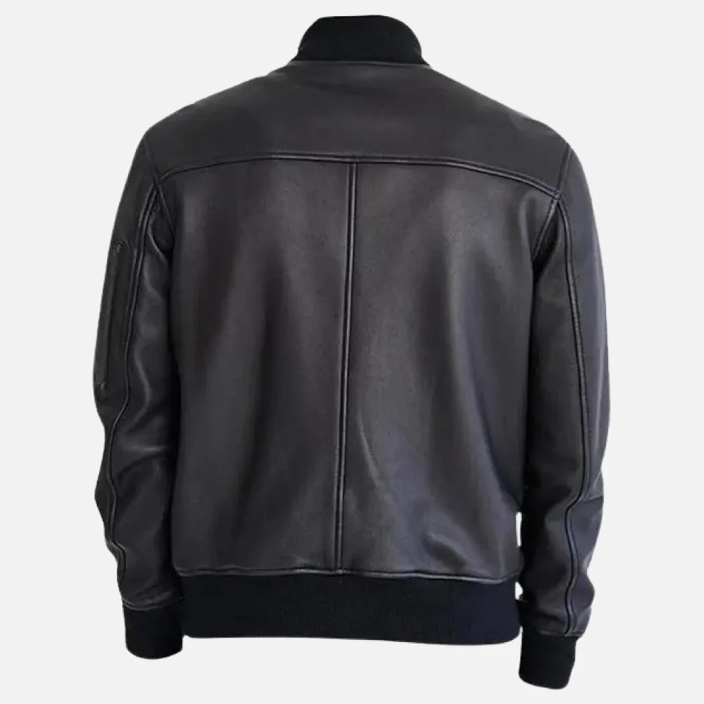 Be the first to review “Men’s Black Leather Bomber Jacket”