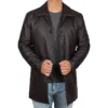 Embrace classic, rugged style with the Vintage Style Brown Leather Overcoat