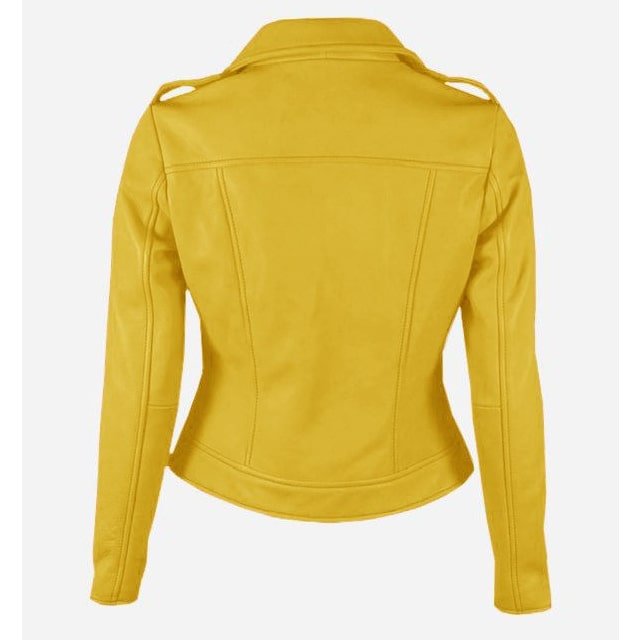 Step out in confidence with the Women Yellow Quilted Stylish Premium Leather Jacket. This vibrant yellow leather jacket is designed for modern women seeking a bold, stylish look. Crafted from premium leather, it features an eye-catching quilted design for a fashionable edge. Perfect as a stylish yellow biker jacket for women or an authentic quilted leather outerwear piece, this jacket is a must-have for elevating your wardrobe. Achieve a head-turning look with this durable and chic premium women’s yellow leather jacket.