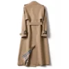 Embrace timeless elegance this winter with the Women’s Brown Wool Trench Coat. This stunning long brown fabric coat offers the perfect blend of warmth and high-fashion sophistication. Ideal for cold weather, this ladies’ wool trench coat is a luxurious and essential addition to your outerwear collection, providing a chic, enduring style.