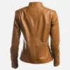 Tan Women’s Plain Short Zipped Leather Jacket